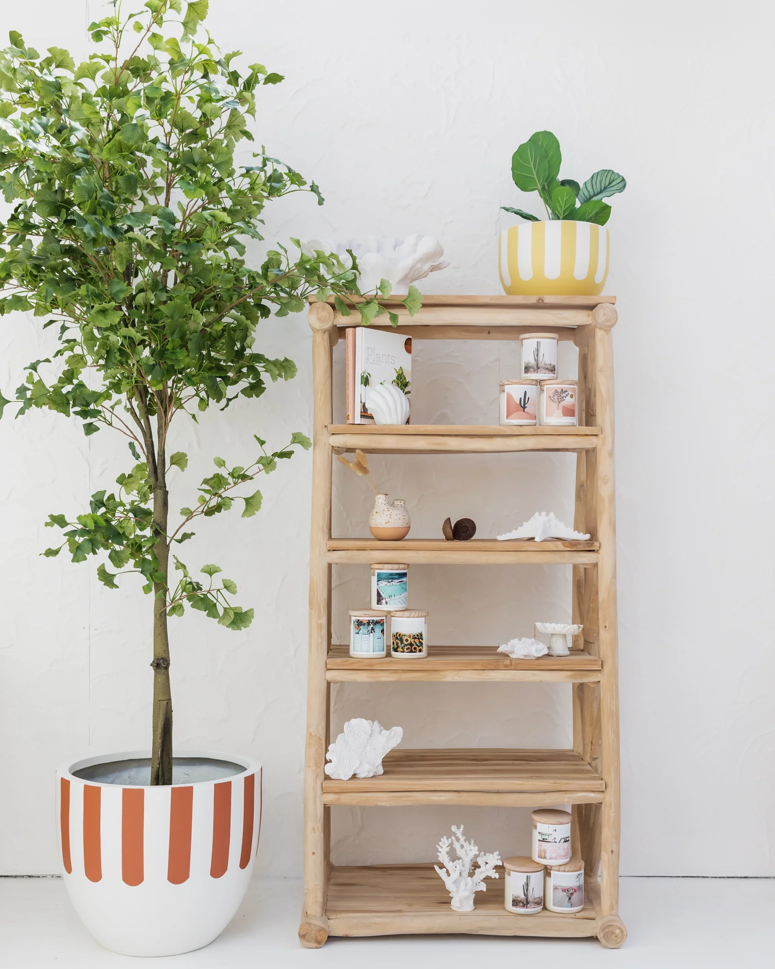 Our beautiful Teak Book Shelf is a statement piece, complementing the coastal or country styled farmhouse designed home. Constructed of sustainably grown teak, kept in organic form.Â
