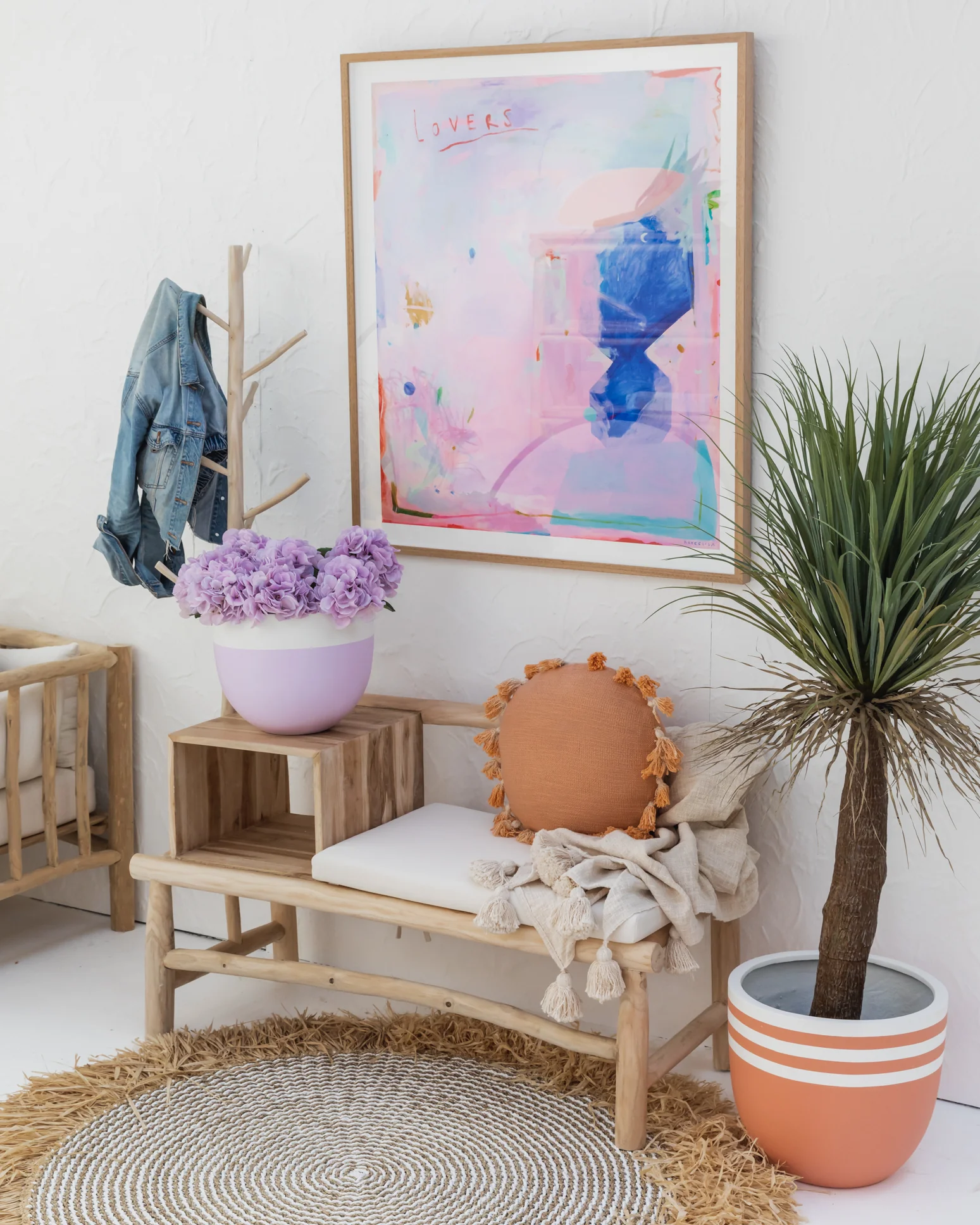Teak Bench + Hat Stand with Cushion