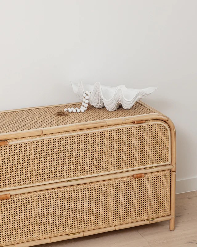 The Dromana Cabinet is a stunning statement piece and is equally practical, consisting of 2 generous shelves to fill with storage baskets or can be used as bar storage. This cabinet is so versatile, the storage options are endless. The simple woven panels & brass hardware add absolute class to this beautifully crafted piece of furniture.