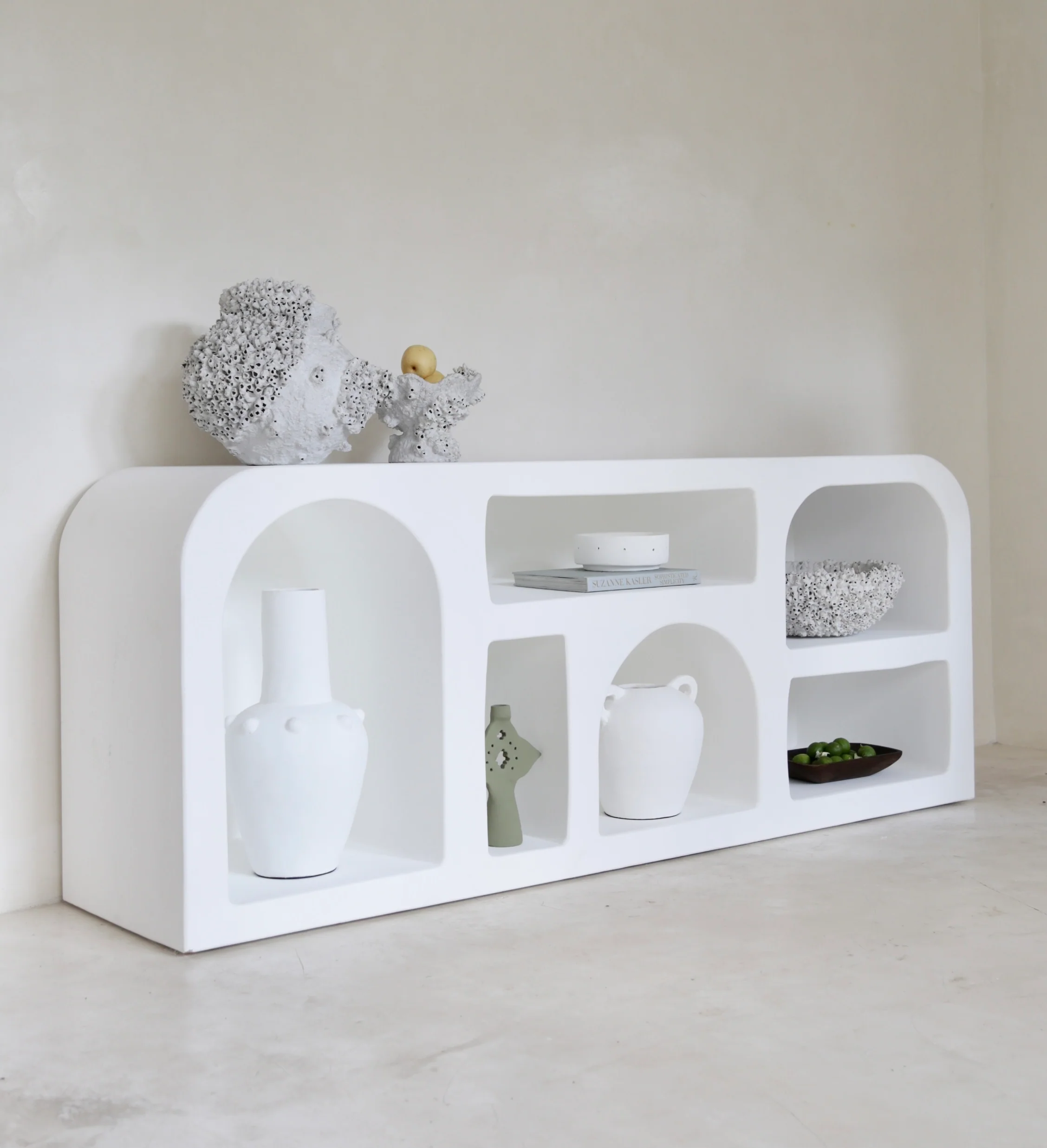 Our Mediterranean Luxe Collection has been exclusively designed by Bohteak and has been inspired by our love of styling with pure white bespoke pieces that compliment warm textures, soft coloured linens and a place to style your hand crafted one of a kind ceramics and vessels. Our collection will make your home, look + feel like you are on holiday by the hot Mediterranean Sea every day of the year.