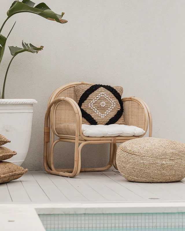 Style this cushion with shell + black cotton detailing to add that touch of texture to your home styling, creating warmth and comfort to your coastal styled homes. This is the perfect design to style inside or in your outdoor entertainers area.